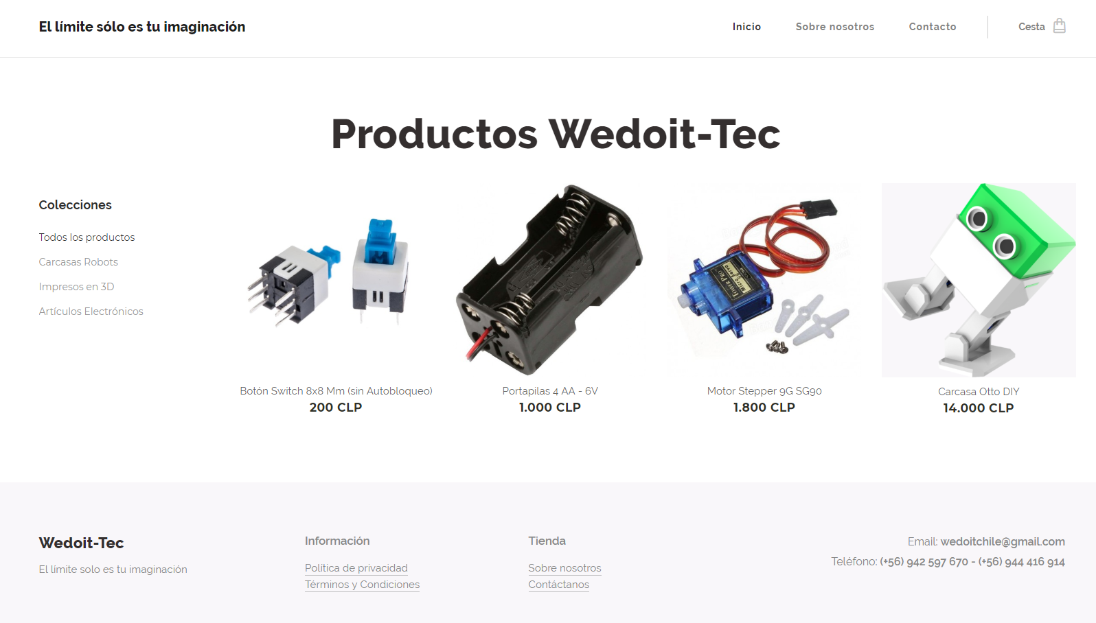 Wedoit-Tec le ofrece productos creados por nosotros y componentes electrónicos para que usted pueda realizar sus proyectos, visite nuestra tienda. Nuestros productos abarcan impresiones en 3D, llaveros impresos en 3D y componentes de electrónica.